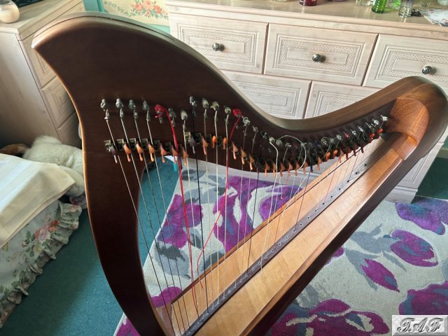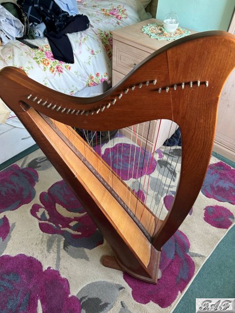 31-string lever Harp, floor-standing. Good condition for age. A few broken strings (reflected in the price), although a stack of strings will be included. No visible marker's mark. Sounds and tunes well. Collection only.